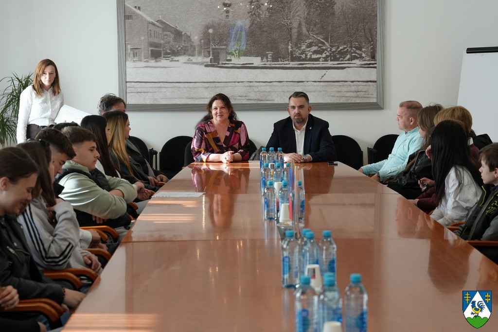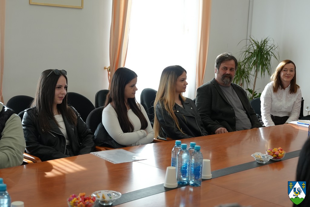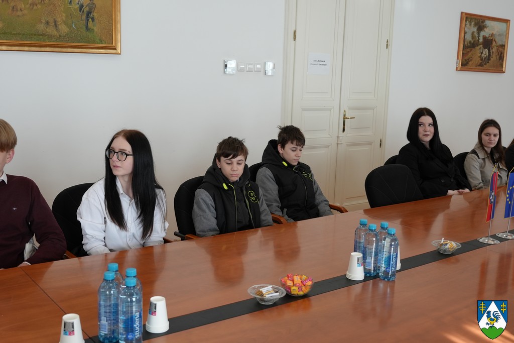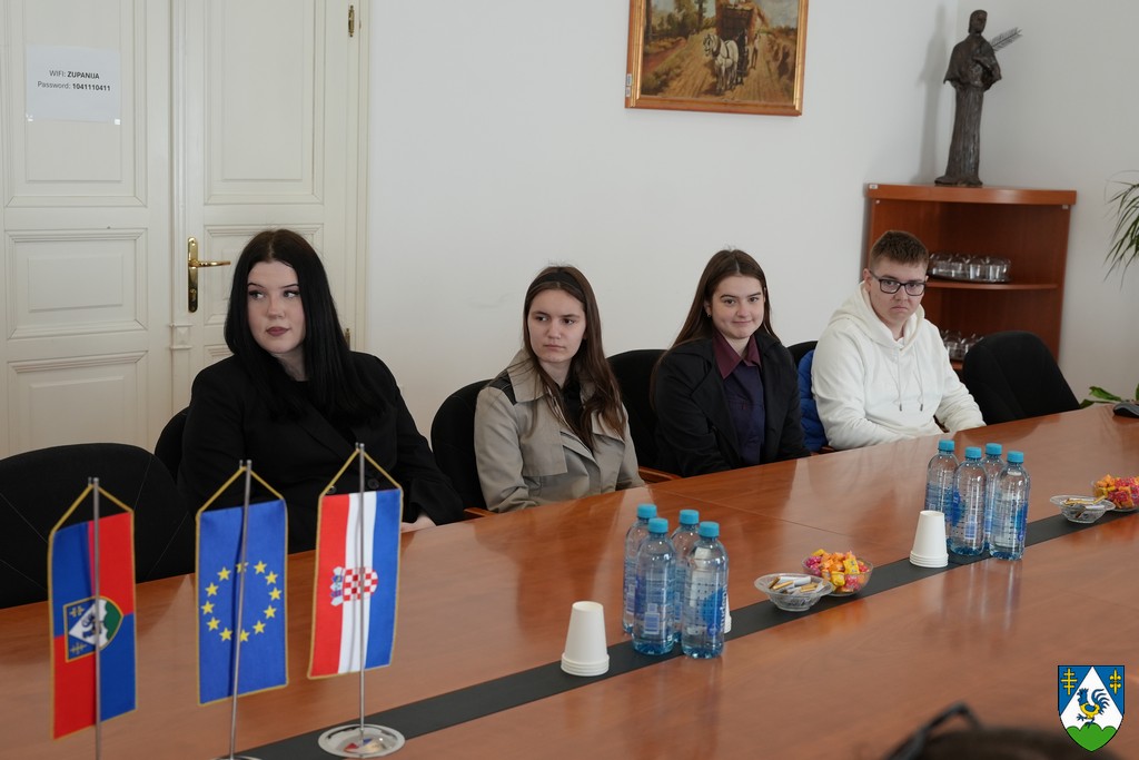 Učenike su dočekali župan Tomislav Golubić i voditeljica Odsjeka za socijalnu skrb Ana Mlinarić te im zahvalili na interesu za upoznavanje s radom županijske uprave.
