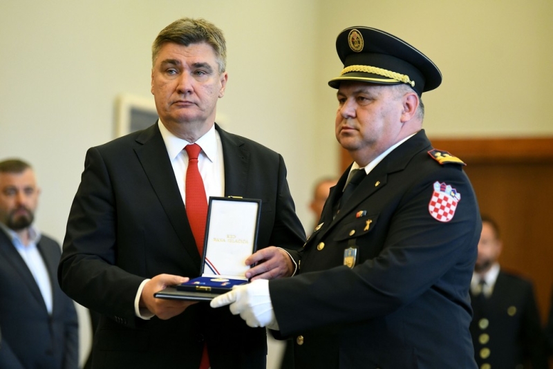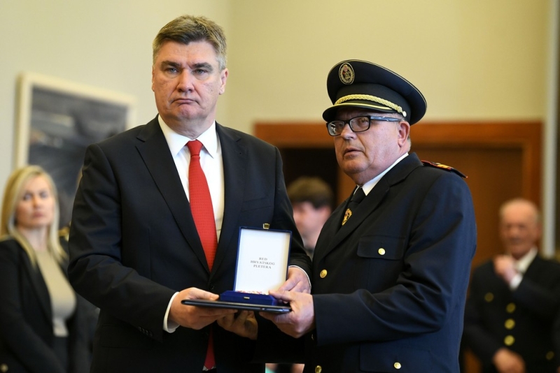Za iznimno uspješno zapovijedanje vatrogasnim postrojbama Republike Hrvatske te za osobite zasluge u njihovom ustroju, predsjednik Milanović odlikovao je Redom bana Jelačića glavnog vatrogasnog zapovjednika Slavka Tucakovića.