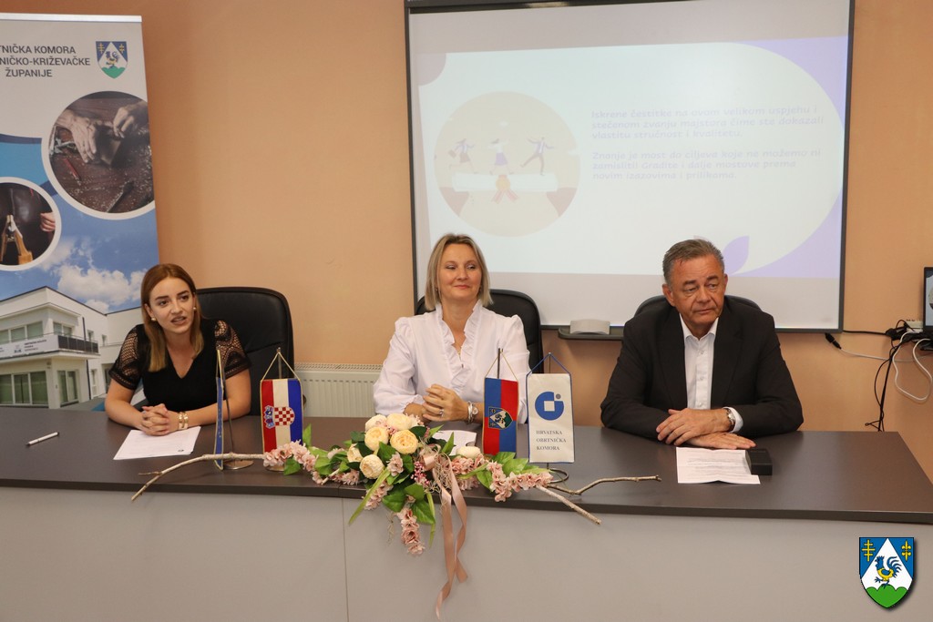 Danas je u Obrtničkoj komori Koprivničko-križevačke županije upriličena svečana dodjela majstorskih diploma koje su župan Darko Koren i predsjednica Obrtničke komore Koprivničko-križevačke županije Irena Kovačić uručili kandidatima koji su majstorske ispite položili krajem 2022., tijekom 2023. i početkom 2024. godine.