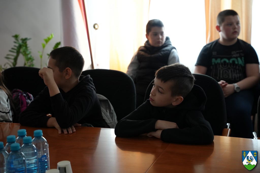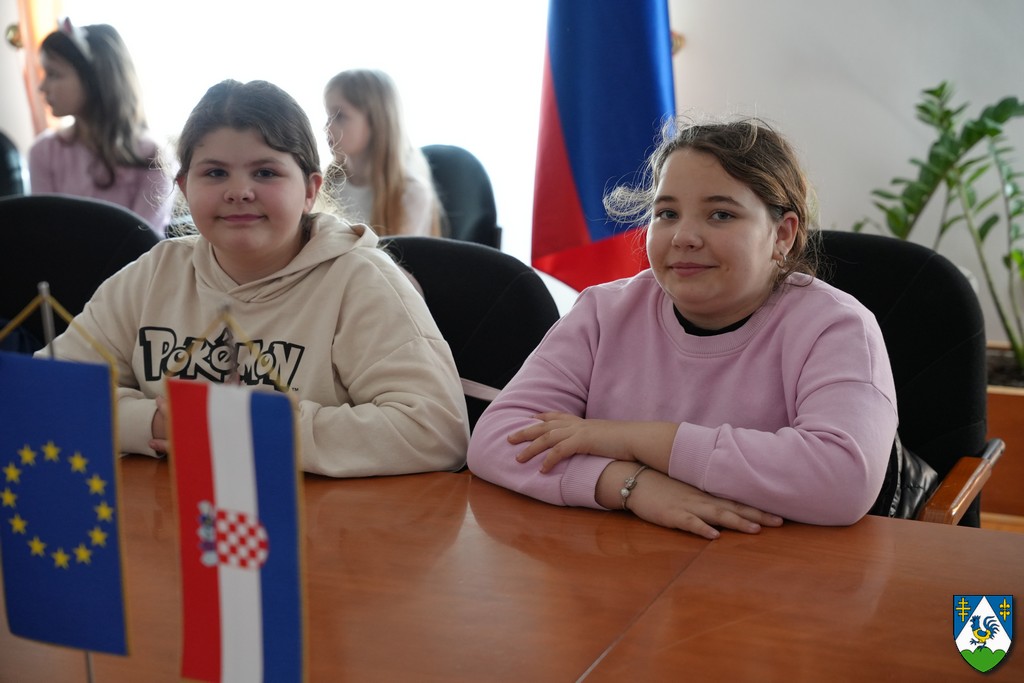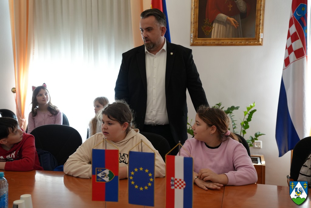 Župan Golubić pozdravio je učenike te im u razgovoru predstavio prirodne, demografske, geografske i druge posebnosti naše županije, kao i djelokrug rada županijske uprave.