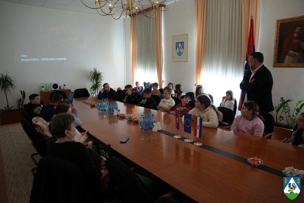Učenici trećih i četvrtih razreda Osnovne škole Sokolovac danas su u pratnji svojih učiteljica i učitelja posjetili županijsku upravu kako bi se upoznali s radom Koprivničko-križevačke županije, a dočekali su ih župan Tomislav Golubić i županijske pročelnice Marina Jakšić i Marijana Lokotar.