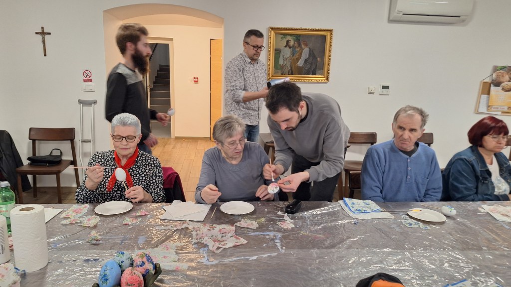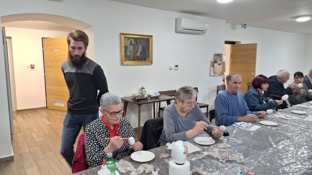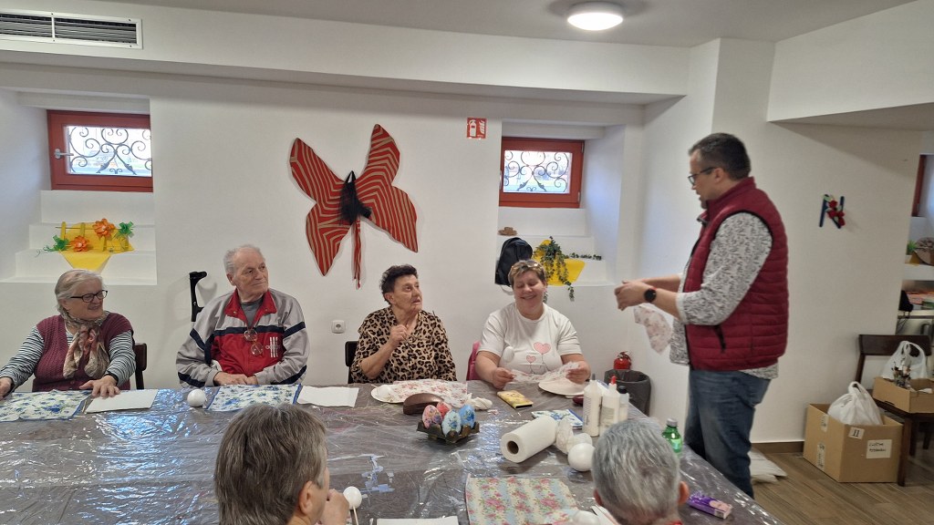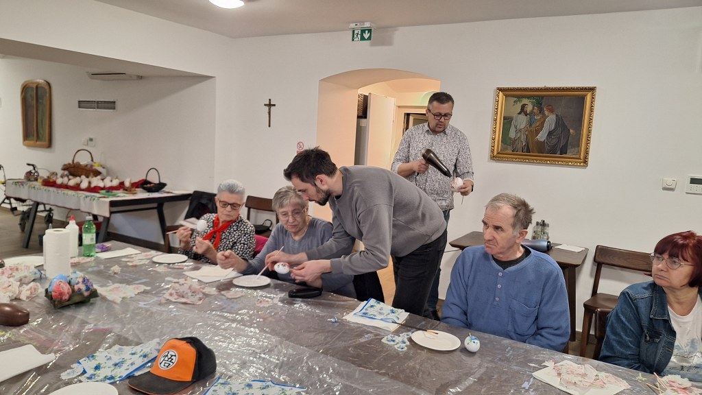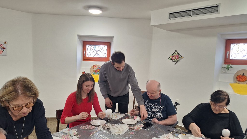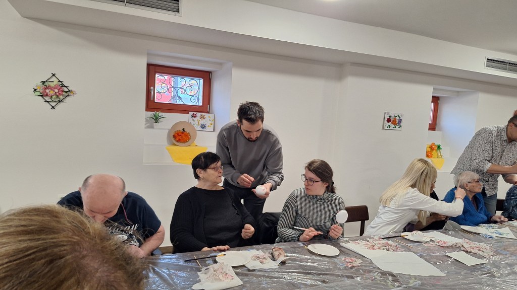 Temeljem dogovorene suradnje udruge „Peski-Art Đurđevac“ i Centra za osobe s invaliditetom Đurđevac u srijedu 11. ožujka 2026. održana je druga kreativno zabavna radionica za korisnike Centra. Radionica je bila na temu izrade i oslikavanja uskrsnih pisanica, a vodio ju je član udruge Dražen Milenković iz Dubrave koji je ujedno i predsjednik Kulturne udruge „Sveti Martin“ iz Dubrave.